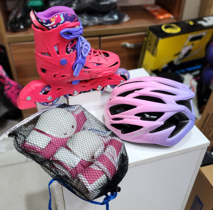 اسکیت تمام هارد استاندارد همراه با کلاه و لوازم ایمنی